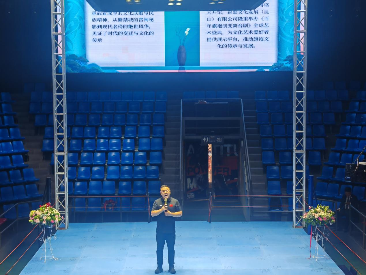 华夏旗袍文化研究院副院长、华夏旗袍文化博物馆副馆长、森燚文化发展(昆山)有限公司副总裁郭峻旗分享百年旗袍演变舞台剧全球大赛报名政策和奖励政策。